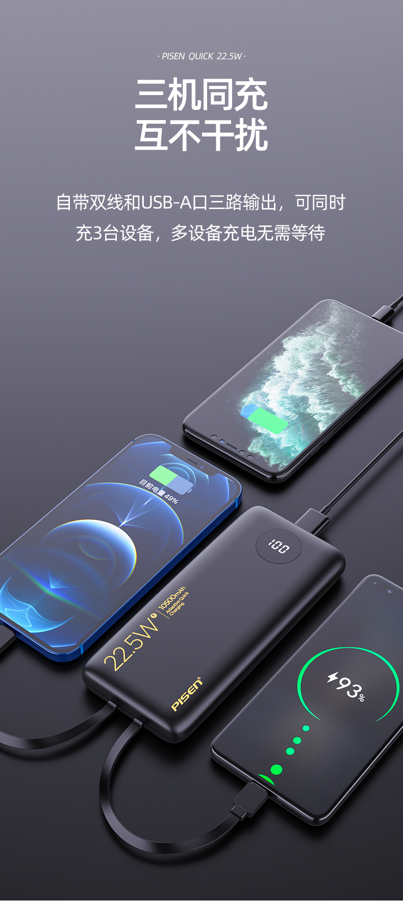 22.5W自带双快充线