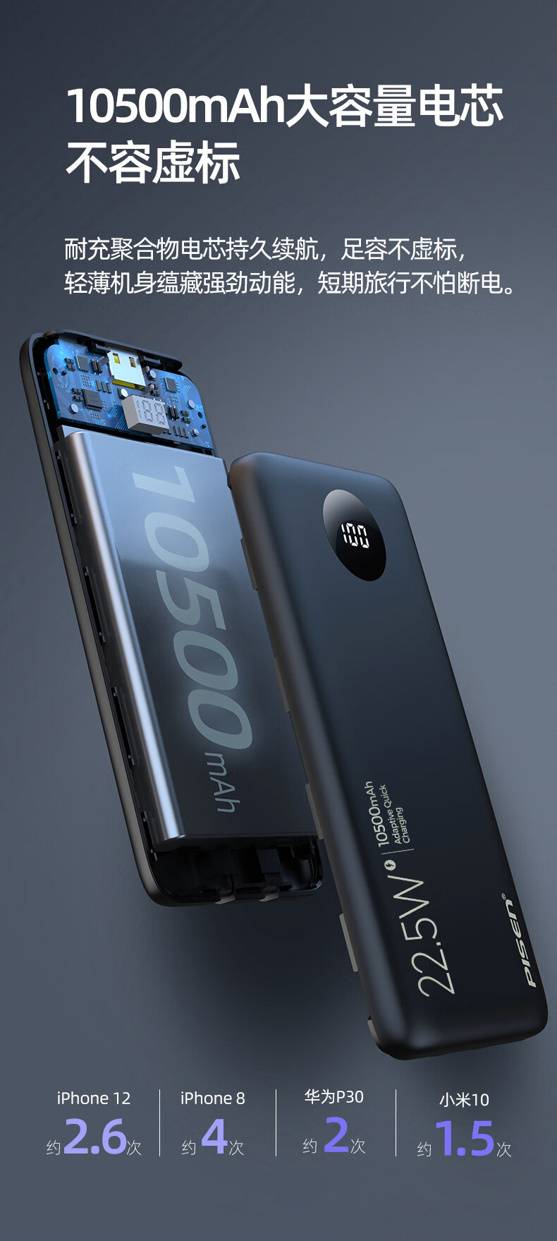 10500mAh充电宝 自带苹果/Type-C线