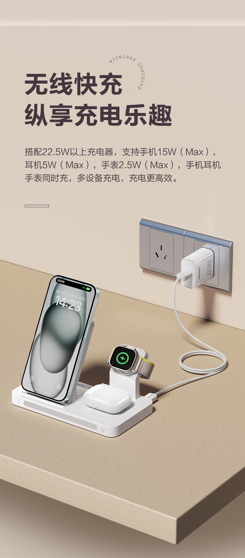 > 三台设备同时充 可折叠便携 桌面支架 22.5W无线充