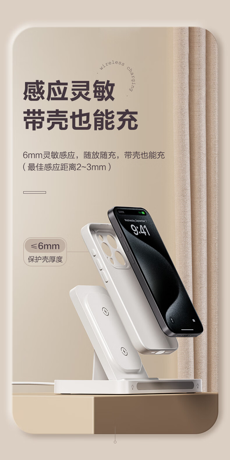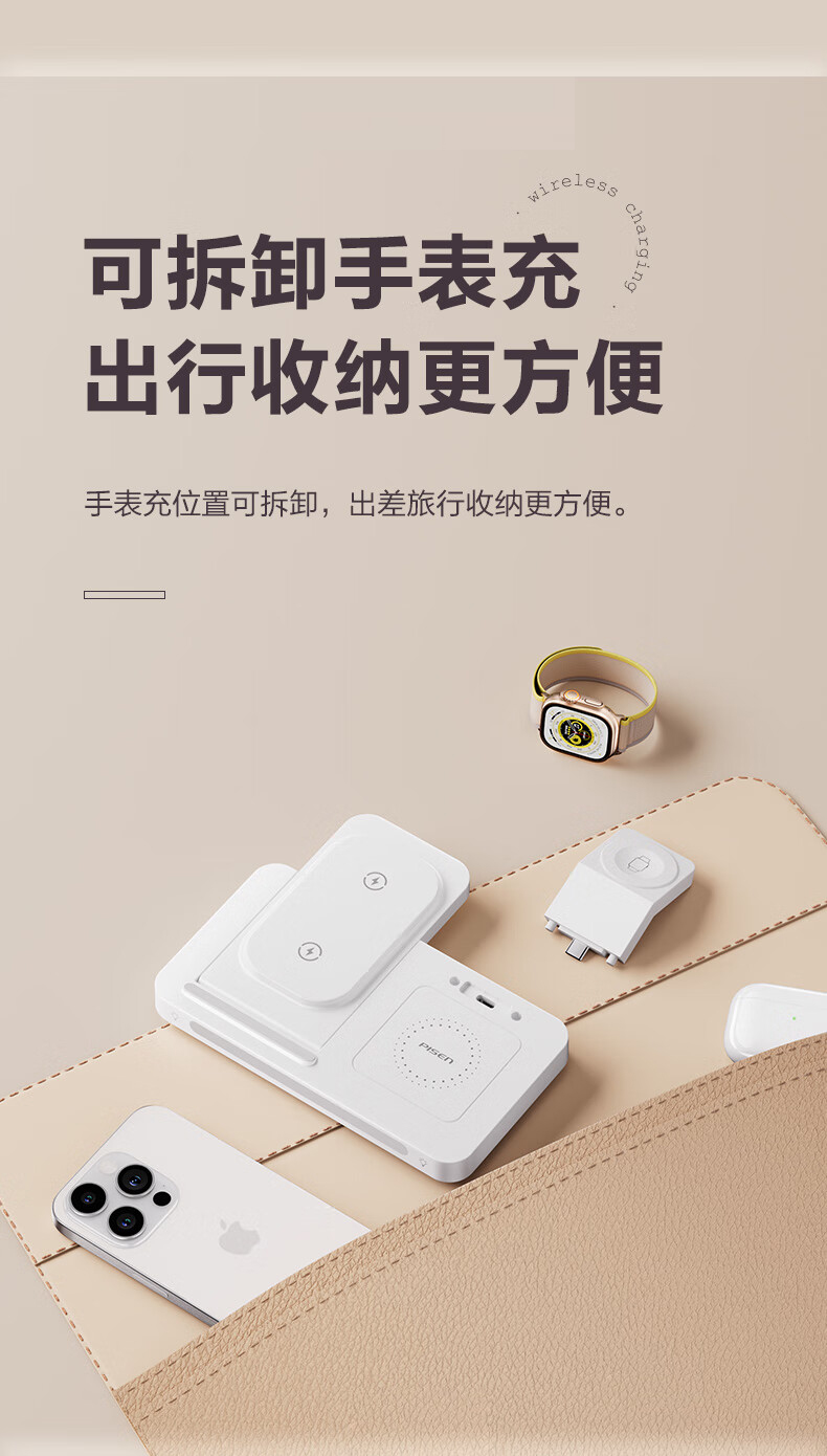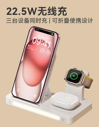 三台设备同时充 可折叠便携 桌面支架 22.5W无线充