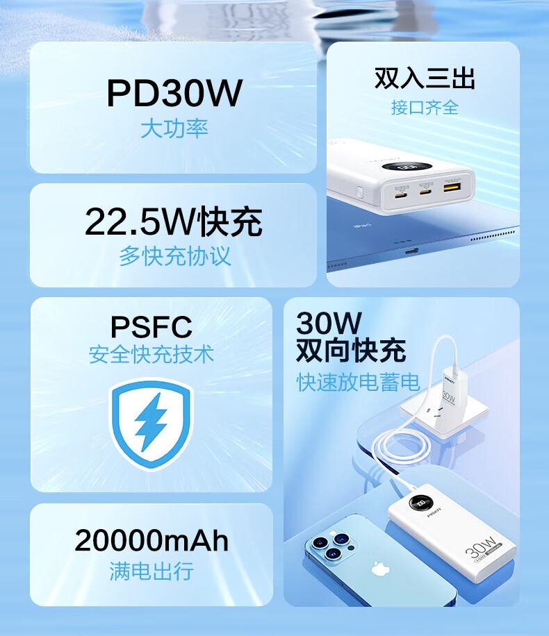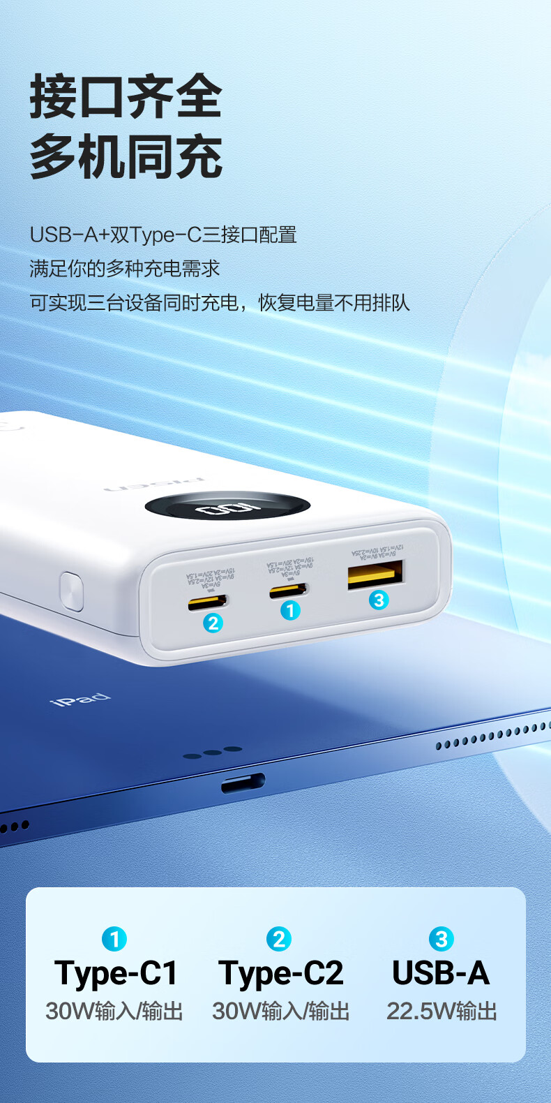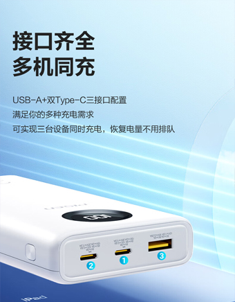 特色功能:电量显示,多口输出,双向快充